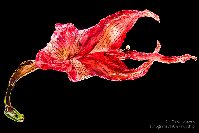 Jeszcze jeden przykład na zdjęcie przy oświetleniu kołowym z pasków LED. Podświetlony amarylis. Opis na stronach 113-115.