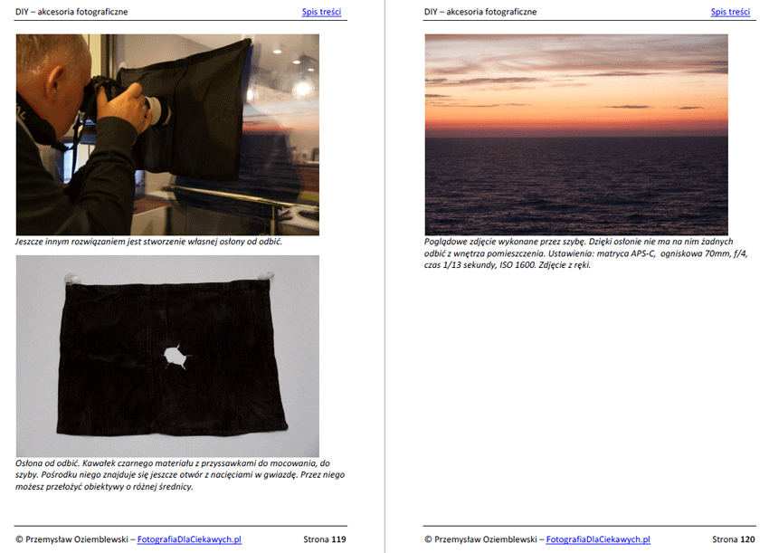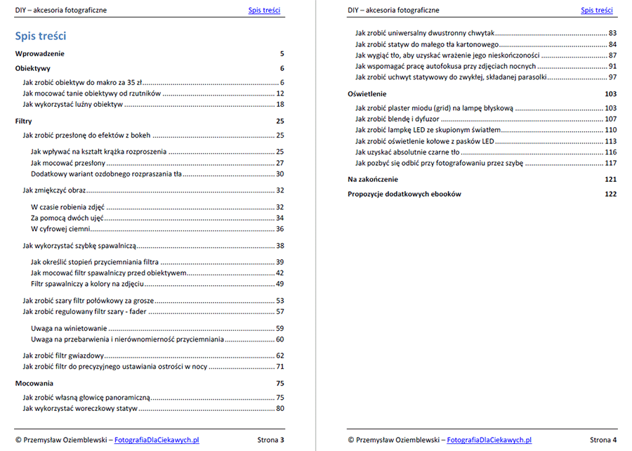 Zapraszam więc do sięgnięcia po ebook „DIY – akcesoria fotograficzne”, czyli jak nie przepłacić i zrobić samemu dodatkowy osprzęt. Wykorzystaj do maksimum zawarte w publikacji informacje, rób akcesoria i fotografuj. Życzę Ci wspaniałych zdjęć.