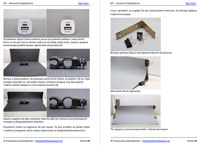 W niniejszym ebooku zebrałem pomysły na akcesoria. Część z nich pochodzi jeszcze z czasów analogowych. Jedne są bardzo proste, żeby nie powiedzieć trywialne, a inne bardziej skomplikowane. Sporo pomysłów na akcesoria rodzi się w wyniku inspiracji pomysłami innych fotografów. Można je wtedy udoskonalić i dostosować do własnych potrzeb. Do ebooka wybrałem te, które uważam za najbardziej praktyczne, które sam zrobiłem. Opisuję też własne rozwiązania. Możesz je wykorzystać i adaptować do swoich zdjęć.